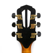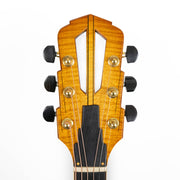 Bryant Trenier is an extremely artful archtop builder who is a long-time friend of Rudy's from his origins in New York. He moved to the small town of Uzes in the south of France some years ago, where he continues his luthiery tradition. He mostly builds custom archtops, with a base price of $10,000. Bryant beautifully blends the old and the new; his guitars are at first glance modern, but a closer look reveals stunning art deco-inspired details.
