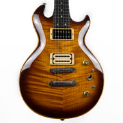 Looking for a truly one of a kind handmade instrument with the looks of a custom shop without breaking the bank? Then this one's for you! We were unable to track down the builder, but this guitar shares similar design aspects to a Dean/Schecter with some striking woods and a gorgeous flame maple top. This sports a vintage style rounded 50's style neck.Â
