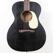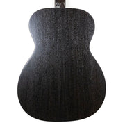 From Martin Guitar’s Website: "The 000-17E Black Smoke blends vintage style with a balanced tone that’s full of character. Built with a solid spruce top and mahogany back and sides, it offers clear articulation with a touch of warmth—ideal for a wide range of playing styles. The satin black finish, antique white binding, and ivoroid pickguard give it a bold, old-school look that stands out. Scalloped X-bracing brings out dynamic response and tonal nuance, while the 24.9" scale length and 1 3/4" nut width provide a comfortable playing feel. The Modified Low Oval neck profile makes for easy fretting, and the East Indian rosewood fingerboard features 1955 Style 18 mother-of-pearl inlays for a classic touch. Aged nickel tuners and a modern straightline rosewood bridge round out the aesthetic. Whether you're writing, recording, or playing live, the 000-17E Black Smoke delivers vintage inspiration with every note. A softshell case is included, and optional electronics are available."