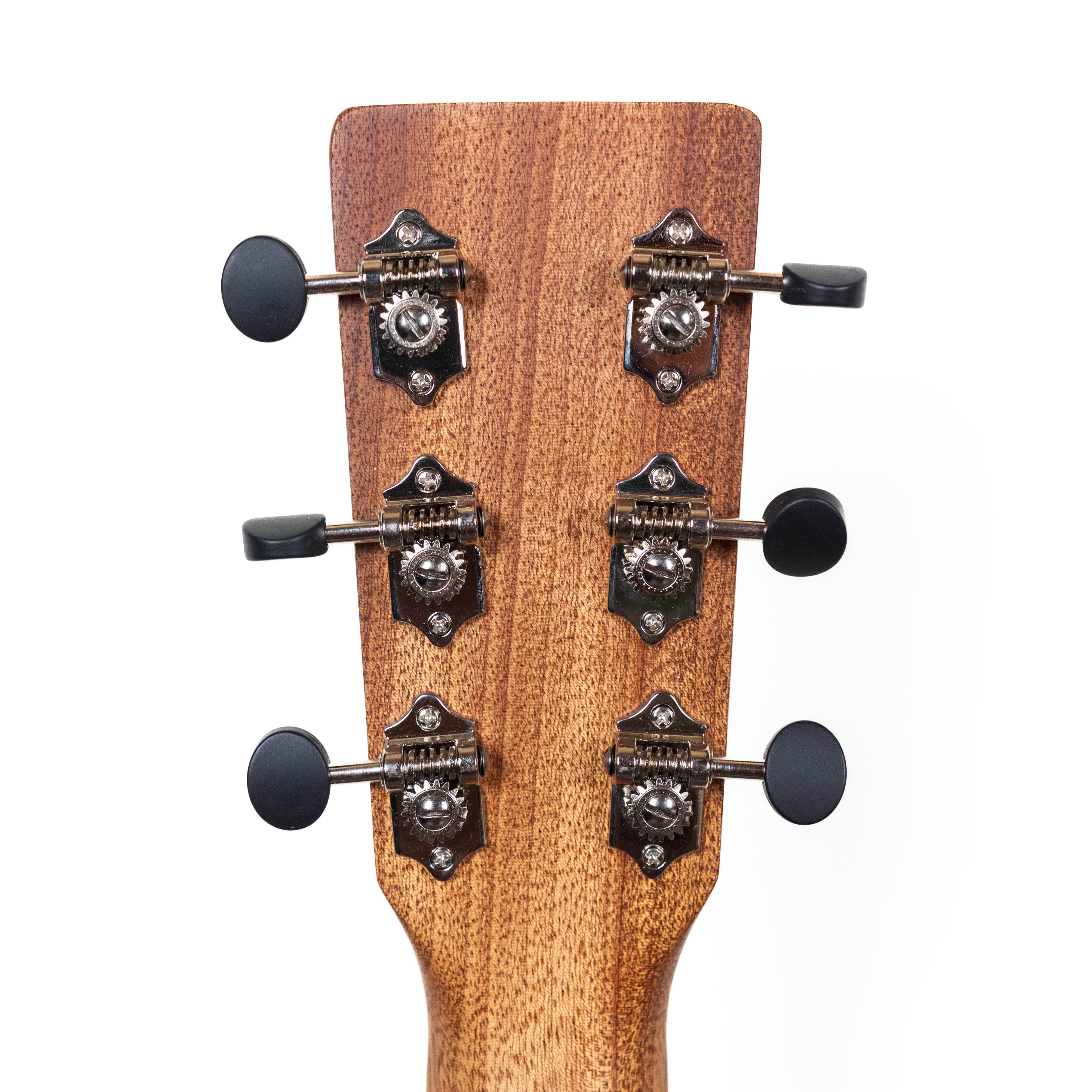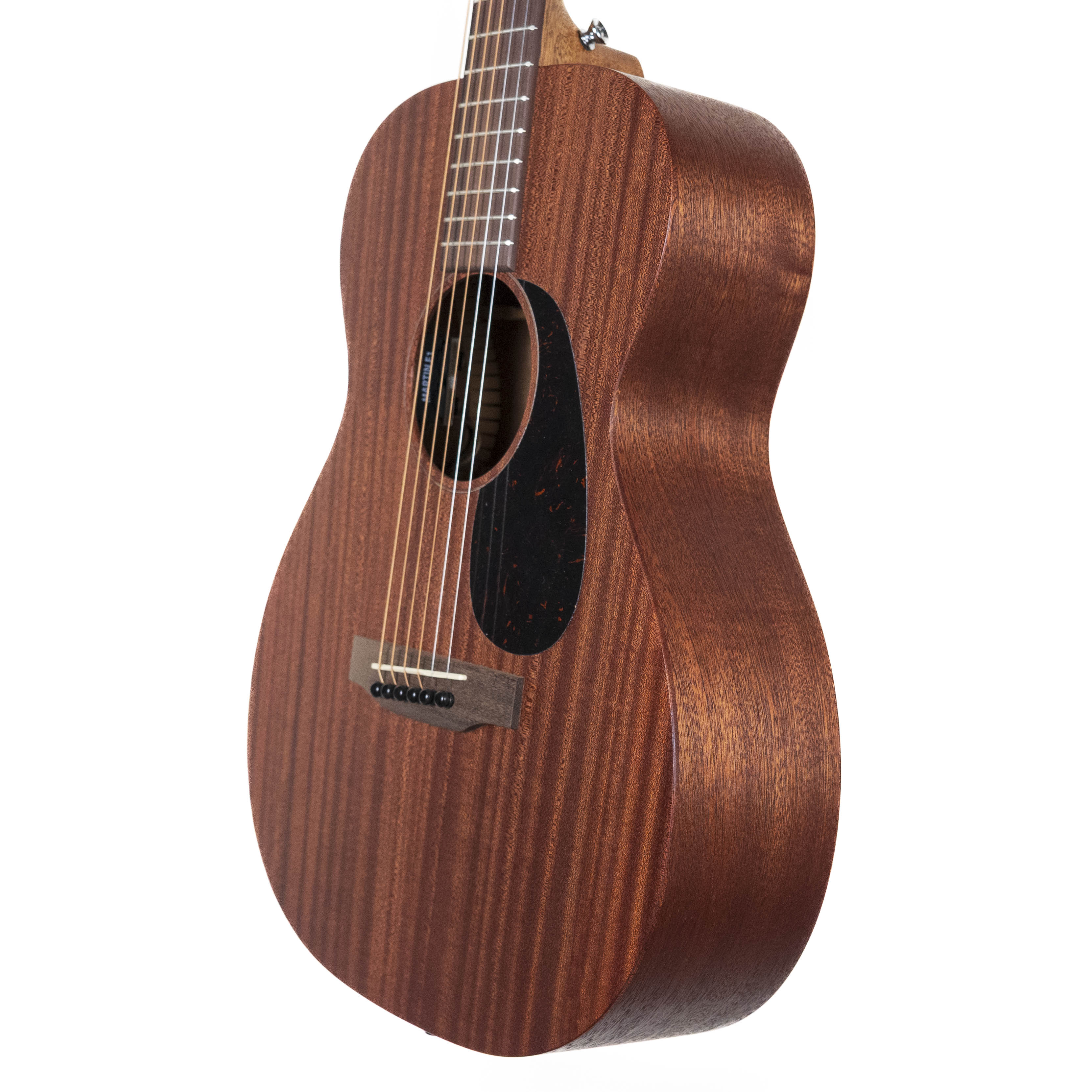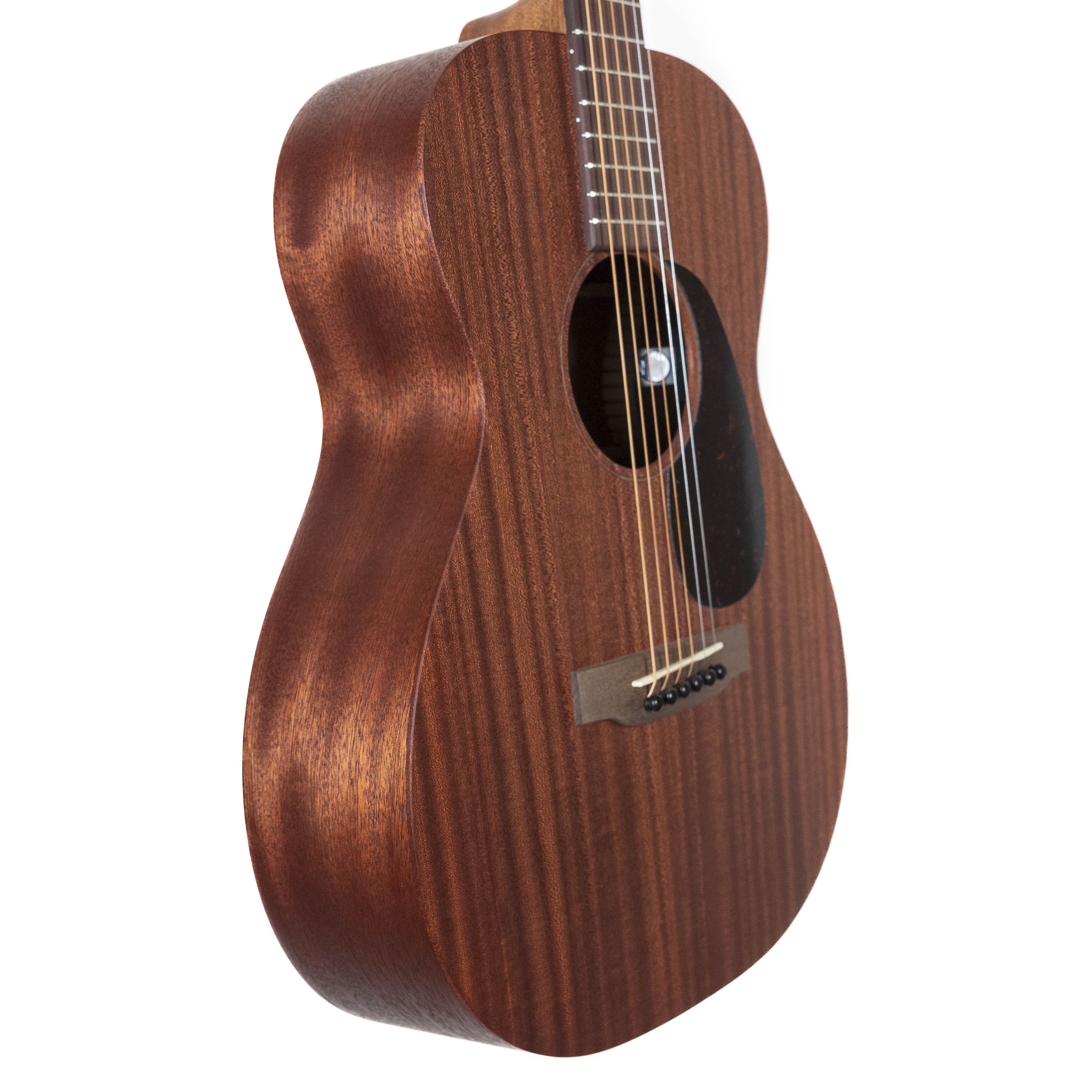 "The Martin 000 Junior E Sapele is proof that big tone can come in a smaller package. This all-new Junior Series model blends Martin’s legendary craftsmanship with a comfortable, compact 000 Junior body size, making it the perfect companion for your musical adventures—whether that’s a cozy songwriting session on the couch, a live set under the spotlight, or a weekend road trip with friends. With all-solid sapele top, back, and sides, scalloped spruce X-bracing, and a 24.9" scale length, this guitar delivers a balanced tone with rich midrange warmth, crisp trebles, and punchy projection. The Performing Artist neck offers effortless playability, while ergonomic refinements like a gently beveled fingerboard edge and optimized string spacing make this guitar even harder to put down. Equipped with Martin E1 electronics with a built-in tuner and intuitive controls for volume, tone, and phase, it’s ready to plug in and shine on any stage. Stylish details like faux abalone inlay and a sleek satin finish round out its vintage-inspired appeal. Packaged with a durable softshell case, the 000 Junior E Sapele is your full-scale ticket to uncompromising sound and style—wherever inspiration strikes."