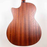 A beautiful Eastman auditorium shape, it features a convenient cutaway in a very nice satin burst finish. It has a solid spruce top, with a laminated sapele back and sides. Comes with a nice padded softcase.