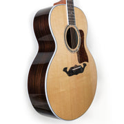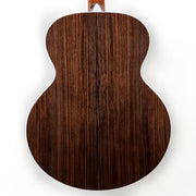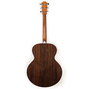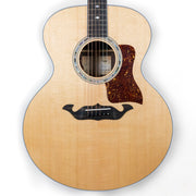 "The Legacy 815e stands alone in the Taylor line as a Jumbo, non-cutaway acoustic-electric that blends elements of Bob Taylor's original designs with subtle upgrades to provide a modern feel. This model is crafted with back and sides of solid Indian rosewood paired with a Sitka spruce top in a big, powerful body that yields a commanding voice. Featuring the traditional X-bracing pattern favored by Bob in the early days, the 815e serves up a warm, richly textured sound with clear trebles, throaty lows and a slight scoop in the midrange, all complemented by beautifully blooming overtones. A modern Taylor neck profile offers a hand-friendly feel and relaxed fretting, while older elements like the mustache bridge and a "straight-ear" peghead silhouette capped with a rosewood veneer. Finished off with the sleek appointments Bob furnished for his original builds, this model sports white binding, a three-ring rosette in green abalone, ebony bridge pins with green abalone dots, a faux-tortoiseshell pickguard, a gloss-finished body and neck, and non-engraved Large Diamond fretboard inlays in mother-of-pearl. It includes a special Legacy interior lable and an LR Baggs Element VTC undersaddle pickup with volume and tone controls mounted inside the soundhole. It ships with a deluxe hardshell case."