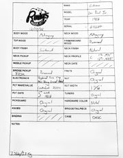This example has a replaced tone cap, and a new string ground added. It has a neck profile that measures .931"/1st and .975"/12th. Serial #611680, comes with the original chipboard case. Weighs 7.3lbs. Please refer to the provided photos for more detail on the condition. As with all of our vintage listings, included is a vintage spec sheet which details and repairs & changes of note.