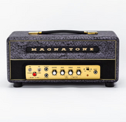 From Magnatone's Website: "Elevate your rig with the Baby M-80 “Purple Python” edition—where boutique tone meets bold style. Wrapped in hand-selected black and deep-purple snakeskin tolex with deluxe gold piping and hardware, this amp also features a gold-anodized faceplate with Slash’s “Skully” logo. This ultra-portable 12-watt powerhouse delivers the same legendary British crunch and creamy overdrive that Slash calls “the most kick-ass little combo I’ve ever played through.”