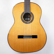 The all-solid C9 Crossover offers a new spin on a Córdoba classic. Built with solid Canadian cedar top and solid mahogany back and sides, this nylon-string guitar's main standout feature is its steel-string style neck. A reduced 48mm nut width, 16" radius fingerboard, and thin-profiled hand-carved mahogany neck will feel familiar for steel-string or electric players who are just getting into nylon-string guitar. Comes with a sturdy hardshell gig bag.