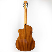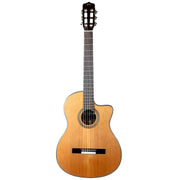 "The 12 Natural is our intermediate-level crossover guitar featuring a comfortable, slim steel-string style neck (48mm nut width) with 16" radius fingerboard. Choose from a solid Canadian cedar top or European spruce top paired with mahogany back and sides. As the name suggests, the 12 Natural has 12 frets to the body, allowing the bridge to sit further back on the soundboard, where resonance is optimized for a large sound with long sustain. Thoughtful finishing touches such as a hand inlaid wooden rosette, 3 ply maple and ebony top purfling, and high gloss polyurethane finish makes this Fusion model both beautiful and practical. Plug in and play with the built in Fishman Presys preamp." Does not include a gig bag.
