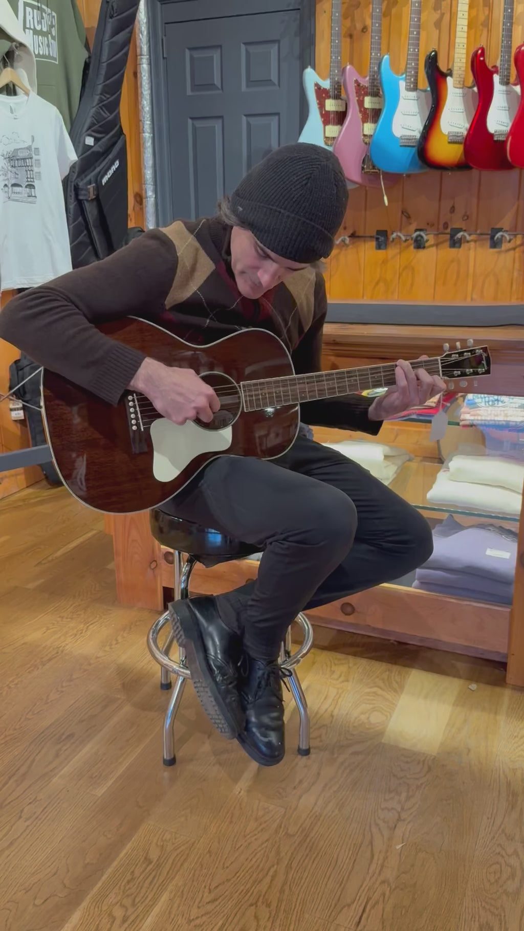 The L-DBO is larger than a 00, slightly smaller than the 000/OM, and designed with a 25” scale neck. Its relatively narrow upper bout imparts a distinctive wedge-shaped appearance, setting it apart from the 0/00/000 “gene pool”. As significantly, the L-DBO conceals two secret weapons: An unusually large soundhole for its size, and narrow, 1/4” top bracing which combine to produce unusual power and presence in such a small package.