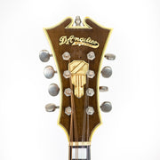 The instrument is in excellent condition and plays beautifully. It's a wonderful example of D'Angelico's work; this particular model features the same headstock design as his archtops. The tone is very sweet, with a bit of a vintage vibe. The mandolin came fitted with a DeArmond pickup.
