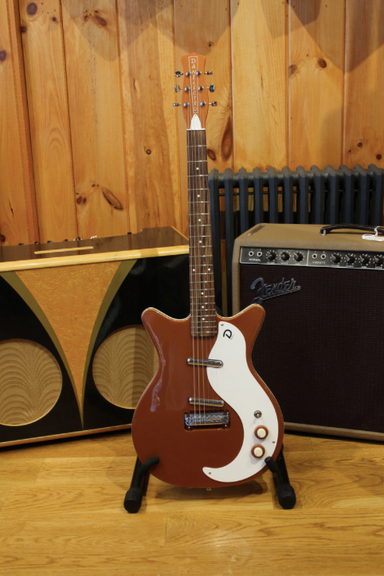 "This is the new ’59 NOS-Plus guitar from Danelectro, with the famous ’59 shorthorn body with Masonite construction and 25” scale length, with a mo...