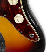 There are scratches and chips from normal use as well as finish checking on the body and neck (pictured). The nut and bridge have been replaced, but are included in the case along with the original receipt which is a delightful piece of provenance you don't always get.