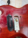 A quintessential part of the rock n roll sound, the SG Jr. has both the look and sound to make it inspiring to so many. A roaring P-90 adds to the sound, which lights up with even the lightest bit of overdrive. This example is in good condition with some more pronounced dings to the body shown in the photos. It sounds amazing with the original P-90 going strong.