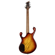 Features include a ash body with a poplar burl top, ovangkol neck, ebony board, ash body. Pickups are stock Fibenare ALV63 set. Serial #6032, comes with a new hardcase.