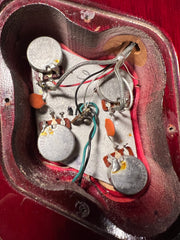 One of the distinctly Norlin-era creations, the LP Deluxe was an interesting take on the Les Paul sound, with the 'pancake' body, maple neck and mini humbuckers in place of the earlier humbucker or P-90 only options for Les Pauls. The result is a totally rock n roll ready axe with plenty of bright attack perfect to sit in any mix, a go to for recording or players who like a Les Paul feel but are looking for a brighter sound. This one is largely original and in great shape with no history of any major cracks or repairs.