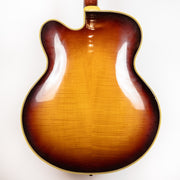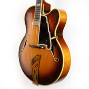 This guitar also features a vintage DeArmond 1100 pickup, a staple of jazz players worldwide. This guitar features an incredible sunburst finish, in thin vintage nitro. This guitar has a lower bout width of 18 inches. Serial #2108 comes with w/ cord for DeArmond S1100 and a non-original hardshell Case.
