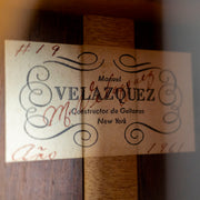 Manuel Velazquez was born in Puerto Rico in 1917, beginning his long and notable road to becoming one of New York's most respected guitar makers as a cabinet maker as a boy, eventually building his first guitar at twelve years old. After spending his childhood and adolescence building guitars with the help and tutelage of relatives who were instrument repairmen, he eventually moved to New York City in 1942, where he developed a reputation for an incredible eye for detail and sound, eventually dropping his day job in favor of being a luthier full time, building Hauser style classical guitars at an ever increasing level of quality, becoming one of the most respected classical builders of his day.