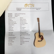 A lovely Martin Custom Shop model, this 2021 model is a great dreadnought model that sounds lovely played harder or backed off finger-style. This Custom Shop model features an upgraded Adirondack spruce top, and has forward shifted bracing. It is in all original condition with no history of repair. The action is set to Martin factory spec and it's all set to go. Serial #2486594, comes with the original case and paperwork.
