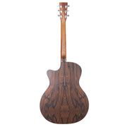 "The remastered X Series is made to play. The acoustic-electric GPC-X2E features a hand-rubbed satin wood top and eye-catching high-pressure laminate (HPL) back and sides patterns—cocobolo with a spruce top or ziricote with a sapele top—for added durability and looks, without sacrificing that classic Martin sound. Playability enhancements include a thinner fingerboard with a gently beveled comfort edge and refined string spacing, and a modernized bridge contour for a smooth and comfortable playing experience, while its Grand Performance body size provides a projective, balanced tone with added bass, and a cutaway helps you reach the highest frets. The GPC-X2E also features an elegant abalone pattern rosette, select hardwood neck, fingerboard, and bridge, and Martin E-1 electronics with a built-in chromatic tuner and volume, tone, and phase controls, letting you plug in and play at any volume. All X Series models come with a softshell case."