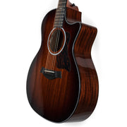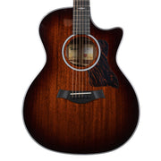 From Taylor: "Featuring solid sapele back and sides paired with a mahogany top, the 324ce serves up a remarkably balanced tone profile. Its comfortable Grand Auditorium body shape and slender Taylor neck make it easy to get the most out of this model's warmth and midrange focus. The mahogany soundboard's natural compression effect yields a smooth attack, while sapele contributes a touch of top-end shimmer. Three next-generation Taylor innovations offer enhanced tone, playability and live performance utility. Scalloped V-Class® bracing builds on the tonal balance, pitch accuracy and projection of the original V-Class platform, adding greater emphasis to the lower register.