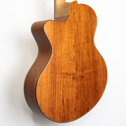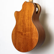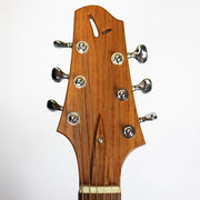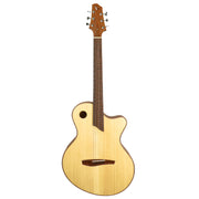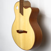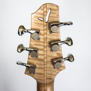This is one extremely responsive and very modern approach to a flat top guitar, and the end result is pure beauty. The guitar is equipped with an Adirondack spruce top, Palo Escrito back and sides, a flamed maple neck reinforced with 4 carbon rods, Pau Ferro fingerboard and a 14" radius. Comes with a hardshell case.Â