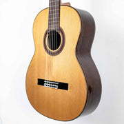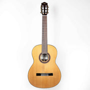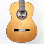 The C7 is a wonderful choice for beginner or intermediate guitarists. A step up from the C5, the C7 offers rosewood back and sides with the choice of a solid cedar top to achieve a warm classic nylon string sound, or a solid European spruce top for a brighter tone. The C7's traditional fan bracing allows for maximum resonance and sustain and premium features such as a hand-inlaid wooden rosette, two-way adjustable truss rod, and a sleek high gloss PU finish. This model doesn't come with a case, but we have several types of gig bags that will fit.