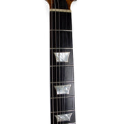 This guitar has only had one owner, who chose to customize the build with the following details: the ebony fretboard (standard to the model is East Indian rosewood), and the Crown style inlays in Mother of Pearl outlined in Sterling Silver (standard inlays are Abalone dots). The result is a one-of-a-kind, gorgeous tone machine that will stun the eyes and ears with its intense beauty. Come play it at our Soho shop to see what we're raving about. If you're too far away to visit us in-person, we hope you'll enjoy a video clip of a wonderful player and regular customer of ours, taking this Orca for a spin.