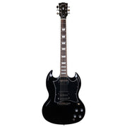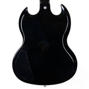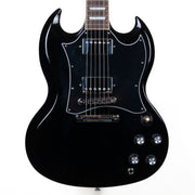 From Gibson's Website: "The Gibson SG Standard rocks the classic looks and features associated with the late 60s style SG™ models sought after by many. A rounded profile mahogany neck, bound rosewood fingerboard, long tenon 19th fret neck joint, and a solid mahogany body provide the backbone for singing sustain. The 490R and 490T Alnico 2 pickups provide the power to drive. A black, 5-ply, full-face pickguard set this SG Standard apart from others... a truly versatile classic."