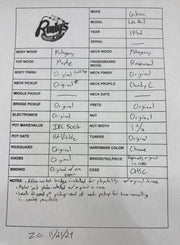 In 1952 Gibson introduced the Les Paul model guitar. This first year example is very clean for a 72 year old guitar. The guitar is all original with the exception of the wrap around bridge that was added for playability. The original bridge is in the case as well as the original bill of sale. The chunky C neck plays well with a low action. The P-90 pickups are crisp and have a strong output. Weighs 8.90 lbs, no serial, comes with original Lifton case.