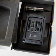 The Stagepro Element is a side-mounted preamp/EQ that offers battery access and a full chromatic tuner that is hidden beneath the control panel to maintain a clean, classy look. The three band EQ with phase inversion and Garrett Null notch filter controls deliver warm, pristine sound even under the most challenging conditions. The system includes the Element pickup and pre-wired strapjack.