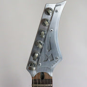 The pickguard was custom made out of recycled aluminum, as well as the headstock and AM Logo.