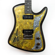 Mistorni’s handbuilt, one-off guitars range anywhere from $5000–$20,000 depending on the value of the guitar’s materials and the hours spent building them. AM Guitars is a one-man shop so Mistorni welcomes all challenges and ideas from players. “I try to make each guitar a one of a kind piece of art,” says Mistorni. “I use customers’ input and materials so even if I’m using similar materials or objects, the guitars are constantly evolving in new directions both sonically and aesthetically ensuring each project is unique and different."