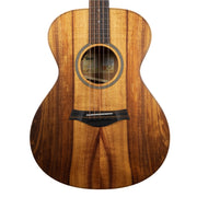 "Building on Taylor's partnership with award-winning singer-songwriter, multi-instrumentalist and producer Jacob Collier, the Jacob Collier Academy 22e 5-String brings the custom DAEAD tuning that Jacob loves to more players than ever. This signature model is a compact Grand Concert acoustic-electric featuring a solid walnut top with layered walnut back and sides, serving up a warm, woody midrange tone with a clear treble range and plenty of presence in the low end, beautifully complementing the harmonic possibilities that come with the unique tuning intervals. Adding to its accessible feel is a built-in beveled armrest that offers a smooth surface for your strumming arm, while the slender Taylor neck makes fretting a breeze. Subtle visual details include a three-ring Baltic birch rosette, 4mm dot inlays in mother of pearl, nickel tuning machines, and a matte finish. It ships with Fishman Presys VT Sonitone electronics for rich plugged-in sound and includes a padded gig bag for protection."