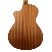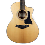 From Taylor Guitars: "Players love our cutaway Grand Concert acoustic guitars for their articulate sound and compact dimensions, and the 112ce fits the bill at a price point that's especially ideal for new players. A solid spruce top delivers bold, punchy sound with a balanced, clean character, making it a great choice for fingerstyle players as well as flatpickers and strummers. New and experienced players alike will appreciate the responsive, relaxed feel of the slender Taylor neck, and with ES2 electronics on board, you're guaranteed authentic acoustic tone whenever you need to plug in to an amplifier or PA. The guitar comes with a lightweight, soft gig bag for transporting the 112ce between home, lessons and wherever else your music takes you."