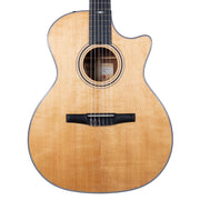 "Players looking for a new sound to add to their acoustic toolkit will appreciate the snappy, classical-inspired tone of the 314ce-N. Solid sapele back and sides with a Sitka spruce top serve up a bold, punchy nylon-string sound with a rich midrange, warm lows and articulate highs. Combined with the 1-7/8" nut width, it all adds up to the ideal package for fingerstyle players, offering plenty of string spacing without making it difficult to fret complex chords. The appointment package maintains a performance-focused aesthetic with Gemstone inlays and a glossy top finish with satin back and sides. It includes our ES-N pickup for authentic live tone and ships with a hardshell case."