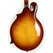 This mandolin has a soft V neck shape that's accentuated by its comfortable nut width of 1 1/8'' making for easy playing and chording. It features a mandolin scale length of 13 7/8", spruce top with highly flamed maple back, sides and neck. This F style mandolin features John's proprietary scroll design and ebony pickguard, fretboard, bridge and headstock veneer.