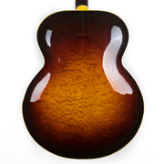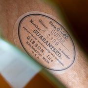 This beautiful Super 400 was considered top of the line when it was built in 1948, and still holds the crown to this day with its resonant spruce top, spectacular figured maple back and sides, rare Ted McCarty-designed Gibson "Finger Rest" double pickup/pickguard, and gold hardware. This guitar is mostly original, the bridge pickup has been rewound and it has been refretted. The mini output jack has been replaced with a full size jack and a hole has been drilled on the side to accommodate the new output jack.