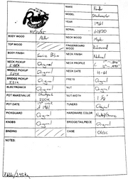 This example is in 100% original condition, with a neck profile measuring .806"/1st and .990/12th. The neck is dated 4-61 and the pot codes dated 14th week of 1961. Serial #61820, comes with the original case. Weighs 7.66lbs. Please refer to the provided photos for more detail on the condition. As with all of our vintage listings, included is a vintage spec sheet which details and repairs & changes of note.