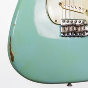 Well, this is a first. There are rare birds and then there's this: a factory original finish Sonic Blue Strat from '61 featuring the iconic neck shape and feel. With Custom Color's far more rare in pre-CBS examples, Sonic Blue was already one of the more elusive colors. There are few parallels in vintage pieces to how cool this one is, that plays just as good as it looks with the perfect amount of wear as well. The frets are in great shape with lots of playability. Not much more can be said about a rare '61 custom color Strat, if you're here you know how cool this thing is. Available now only at Rudy’s Music NYC.