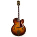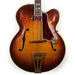 Here's one for the books! Built in very limited numbers, the Super 400 was the most high end and deluxe appointment archtop guitar Gibson made at the time. A whopping 18" lower bout, this model was meant for the most serious player. Carved spruce top, solid maple back/sides & parallel braced, the Super 400 is all about filling a room. This particular example is a bit different, setup with flatwounds and equipped with a Dearmond Rhythm Chief pickup. Regardless, it has a lovely acoustic quality. It is in remarkable condition with no cracks or repairs. It is mostly original minus a replaced bridge and a rebound pickguard. Serial #A5515, comes with the original case. Weighs 7lbs.