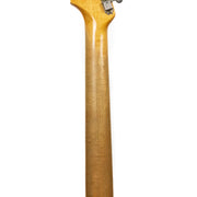 This vintage Fender 1965 L-Series Stratocaster boasts its authentic 3-tone sunburst finish and is in superb condition considering its age. The recently installed jumbo frets offer a smooth playing experience, while the updated nut and 5-way switch enhance the guitar's versatility. This instrument would make a valuable addition to any collection.