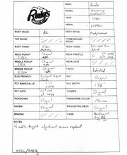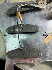 - Electronics: Three "gray-back" single-coil pickups, 5-way selector 1 volume, 2 tone.