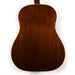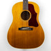 The lesser known sibling of the J-45, the J-50 is known by those in the know as a natural topped version of the J-45. As a result, it has a distinct look as a slope shouldered 60's Gibson acoustic. The mahogany back and sides add a nice warmness to the lows and mids, and the result is a lovely vintage Gibson acoustic. It has a neck profile that measures .806"/1st and .951" by the 9th fret. This example has a reglued bridge, reglued pickguard and the wings of the bridge are beginning to lift again, the bolts under the dot inlays are securing the bridge. Serial #850847, comes with a non original case.