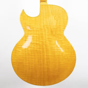 This guitar is reflective of the changes in Gibson's production of the L5 in the mid '60s, with the narrower, 1 9/16ths nut, the Florentine cutaway, laminate construction, Patent sticker humbuckers, and 4 knob, in body wiring.