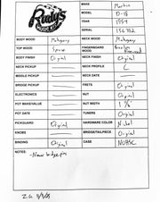 The early '50s Martins hold a special place for many, being a great transition from the pre-war style to the later more sturdier built 60's and 70's models, which oftentimes resulted in them being 'overbuilt' and heavy sounding. This example is lightweight and woody, exactly what you want from a '54 D-18. Its all original minus new bridge pins. Serial #136392, comes with a non original case. Please refer to the provided photos for more detail on the condition. As with all of our vintage listings, included is a vintage spec sheet which details and repairs & changes of note.