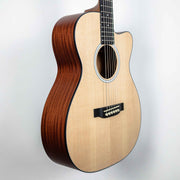 The Junior Series is designed for players looking for big sound in a slightly smaller body. Now available for the first time with a cutaway, the Auditorium style 000CJr-10E features sapele back and sides, which offer warm tones with a strong midrange response. It includes a Sitka spruce top for added warmth and projection and a hand-rubbed neck with a high-performance taper for ease of playability. This model also sports a soft back edge to provide maximum comfort while playing. The 000CJr-10E is equipped with Fishman® Sonitone electronics and includes a soft gig bag for easy transport so you can take your music anywhere. Strung with Retro® light gauge strings. Comes with a gig bag.