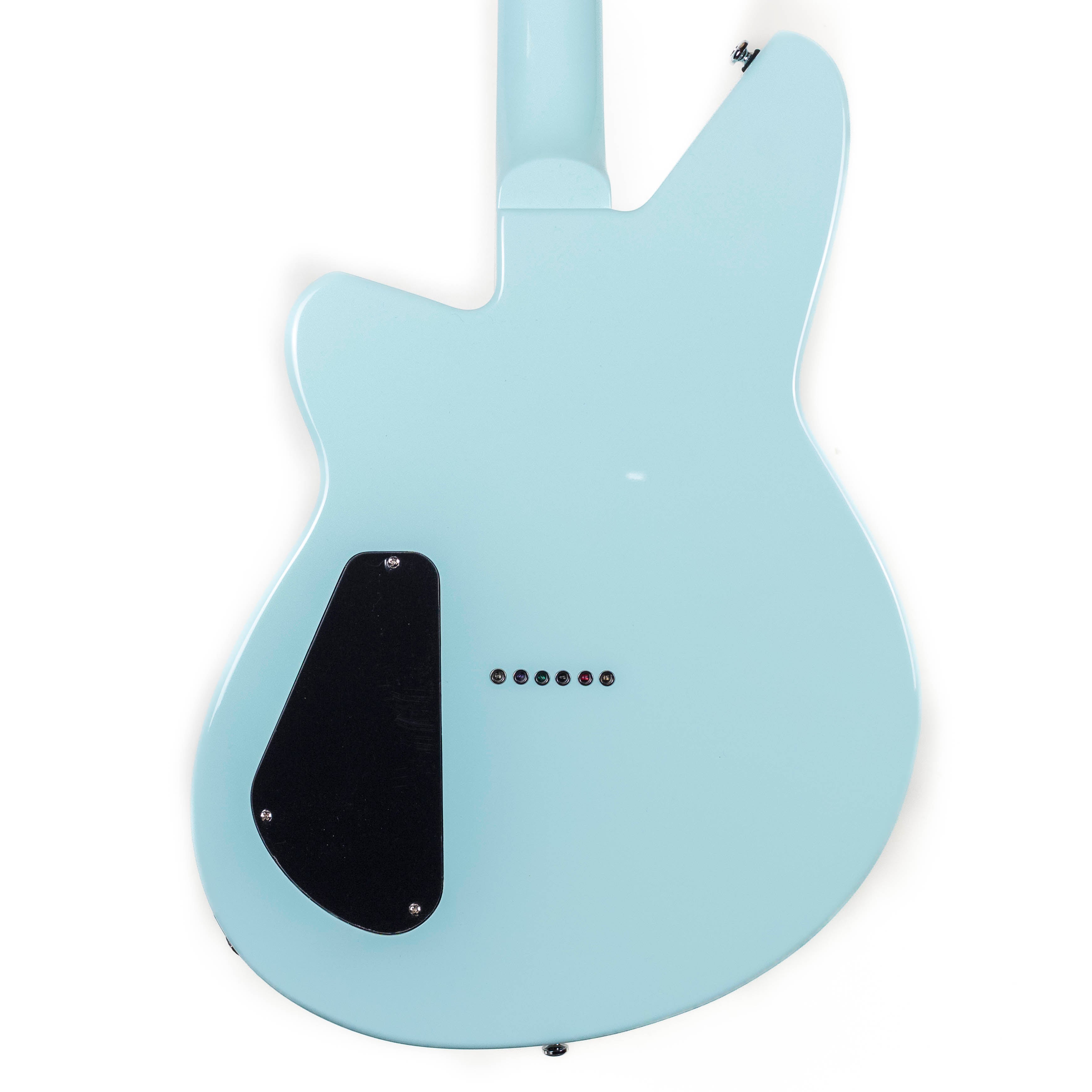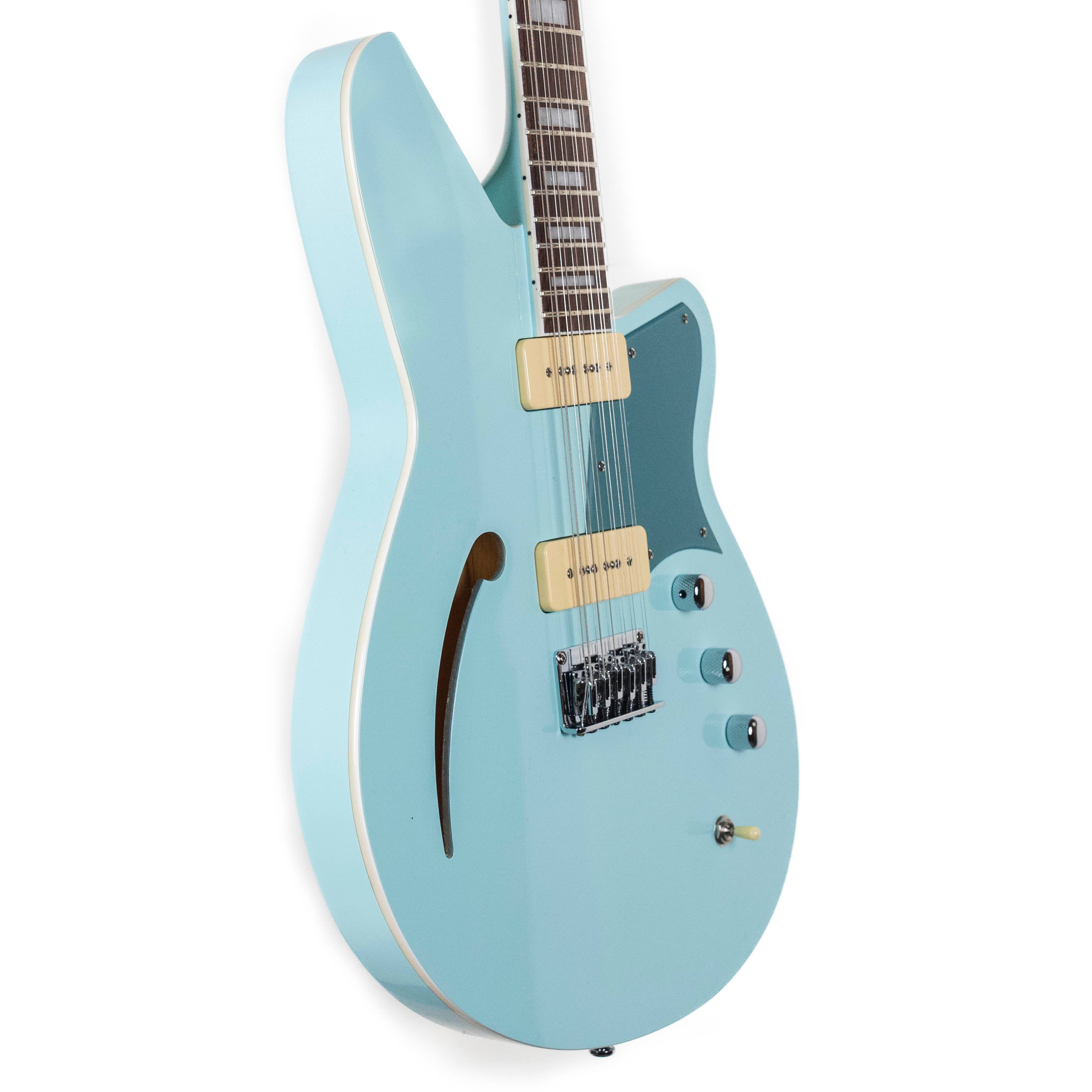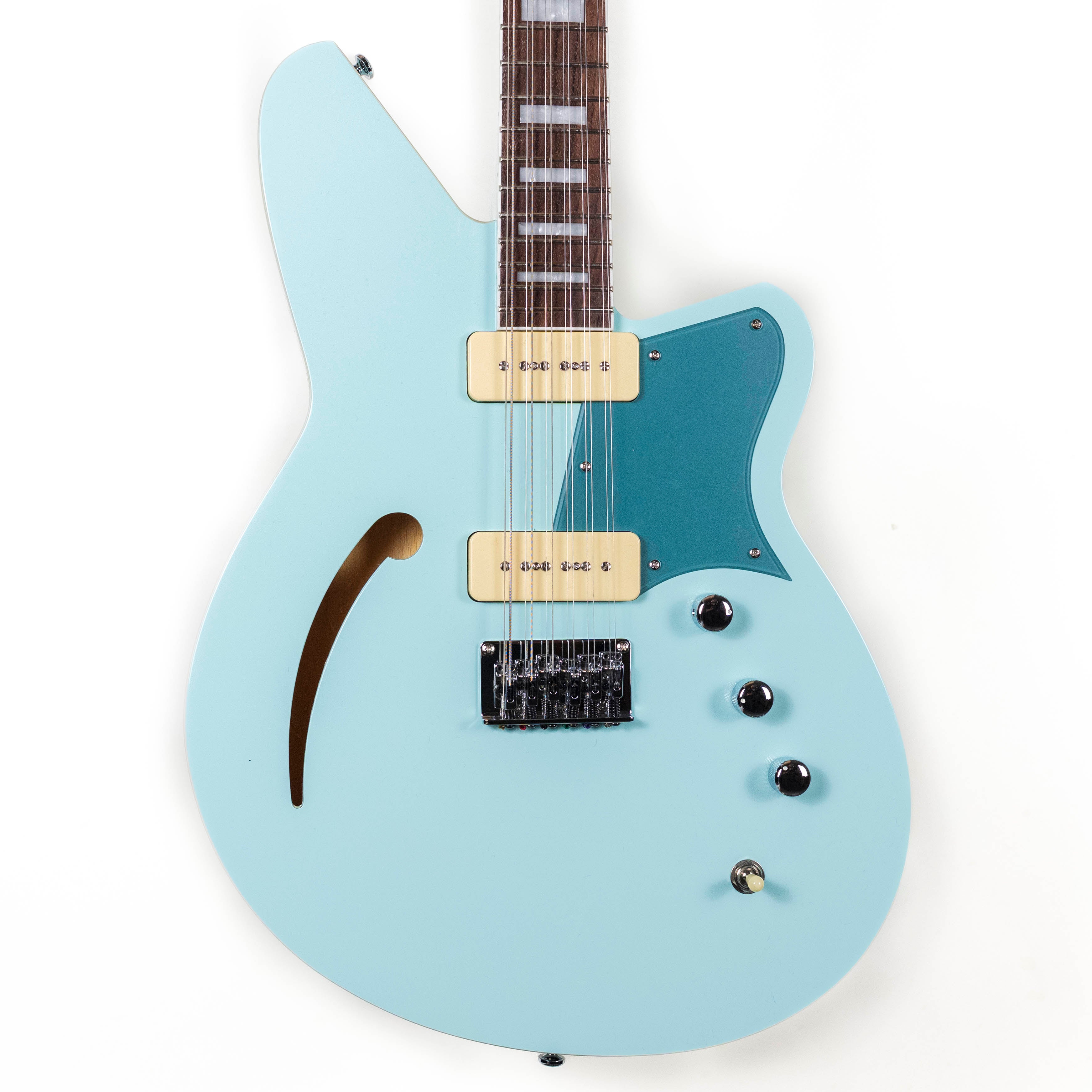 "Larger than life tone and style, not larger than life problems. The bridge is fully intonateable for all 12 strings – independently – chords are always in tune and sound sweeter than you’d expect. The wide nut provides spacing for the extra strings, and the shorter 24-3/4” scale length provides lower string tension. Easier chording means it’s easier to get that shimmer." Comes with a Reverend made softcase.
