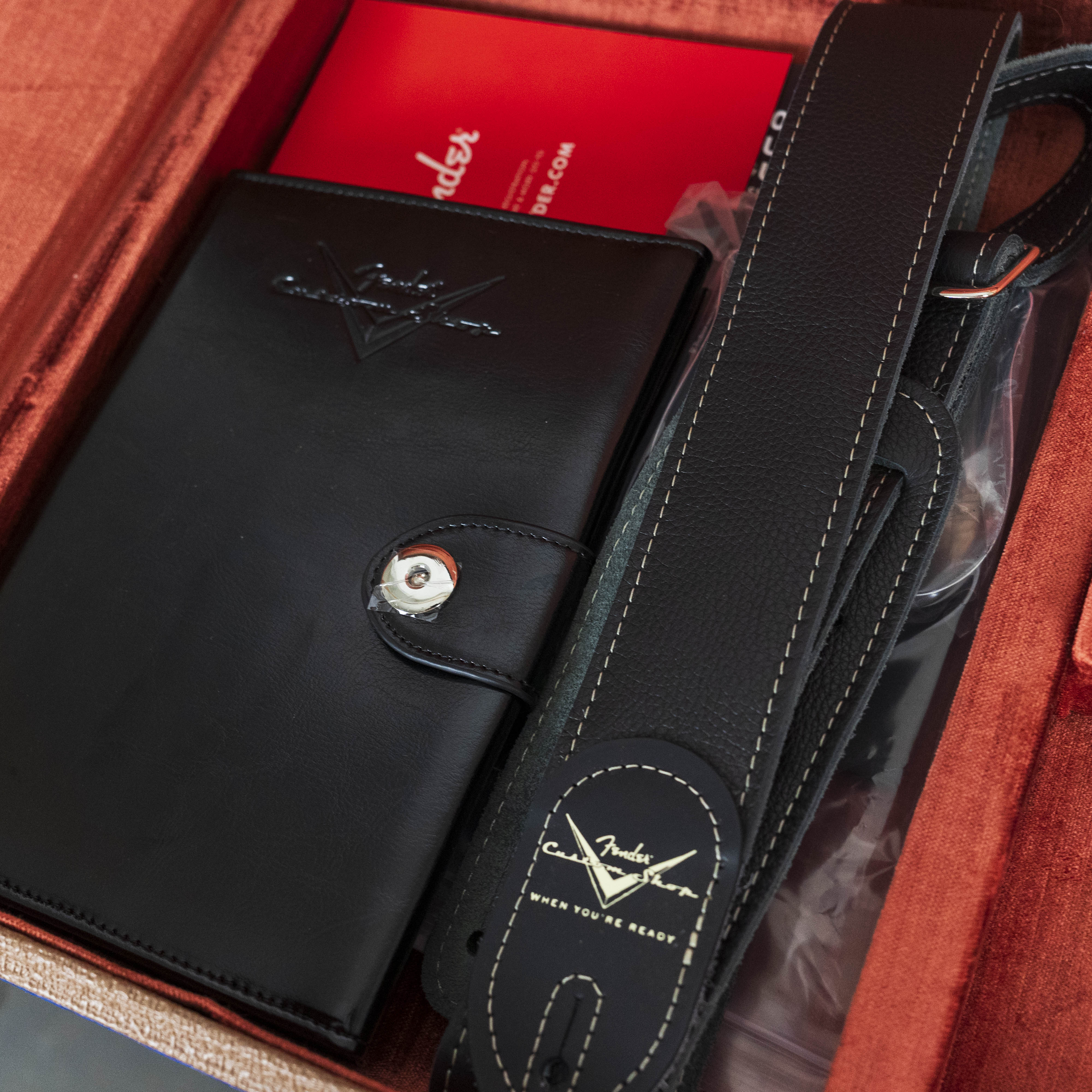 This guitar comes with a deluxe Fender Custom Shop tolex hardshell case.