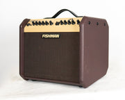 "The Loudbox Mini delivers the tonal quality that has made the Fishman name the standard for great acoustic sound. The Mini packs 60 watts of clean acoustic power, and has two channels featuring Fishman’s legendary preamp and tone control designs. The Mini also features digital reverb and chorus for the instrument channel and reverb for the microphone channel. The Loudbox Mini sports an MP3 input and balanced XLR D.I. output."