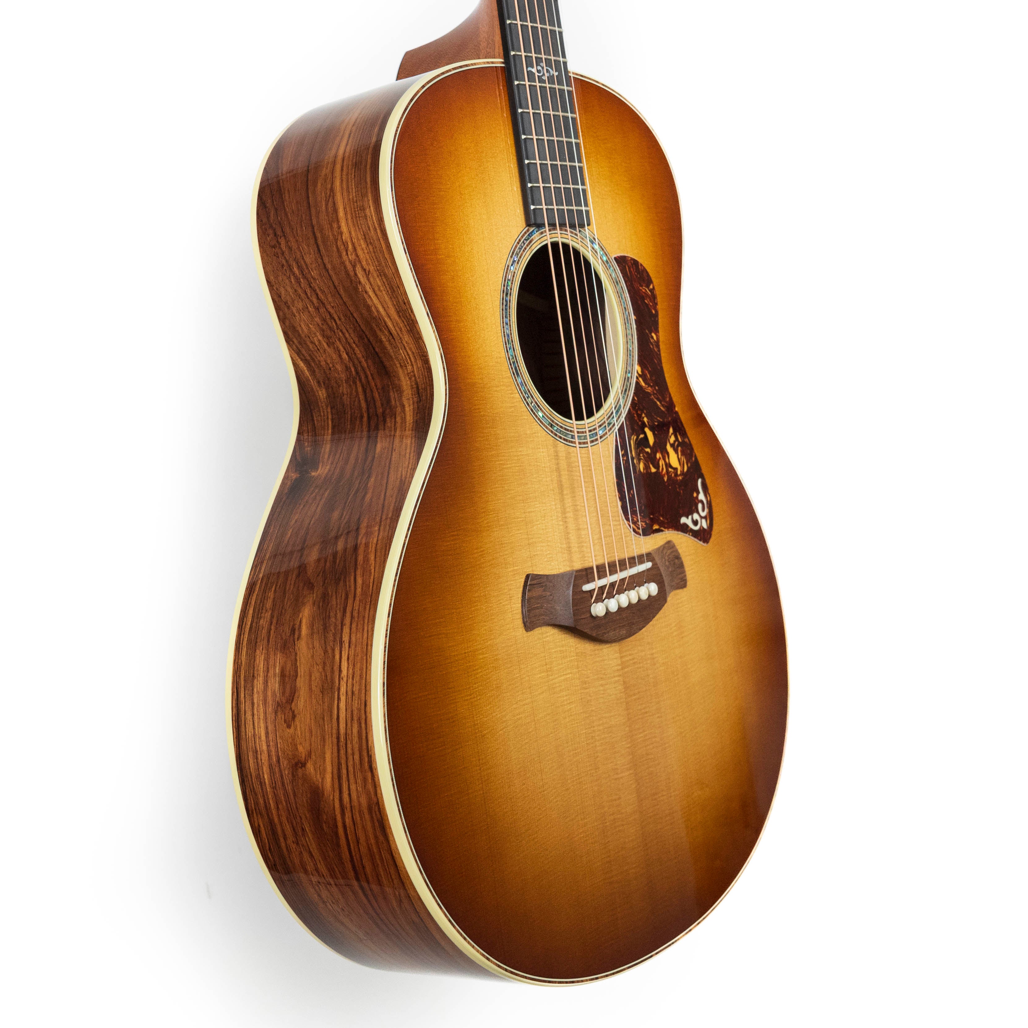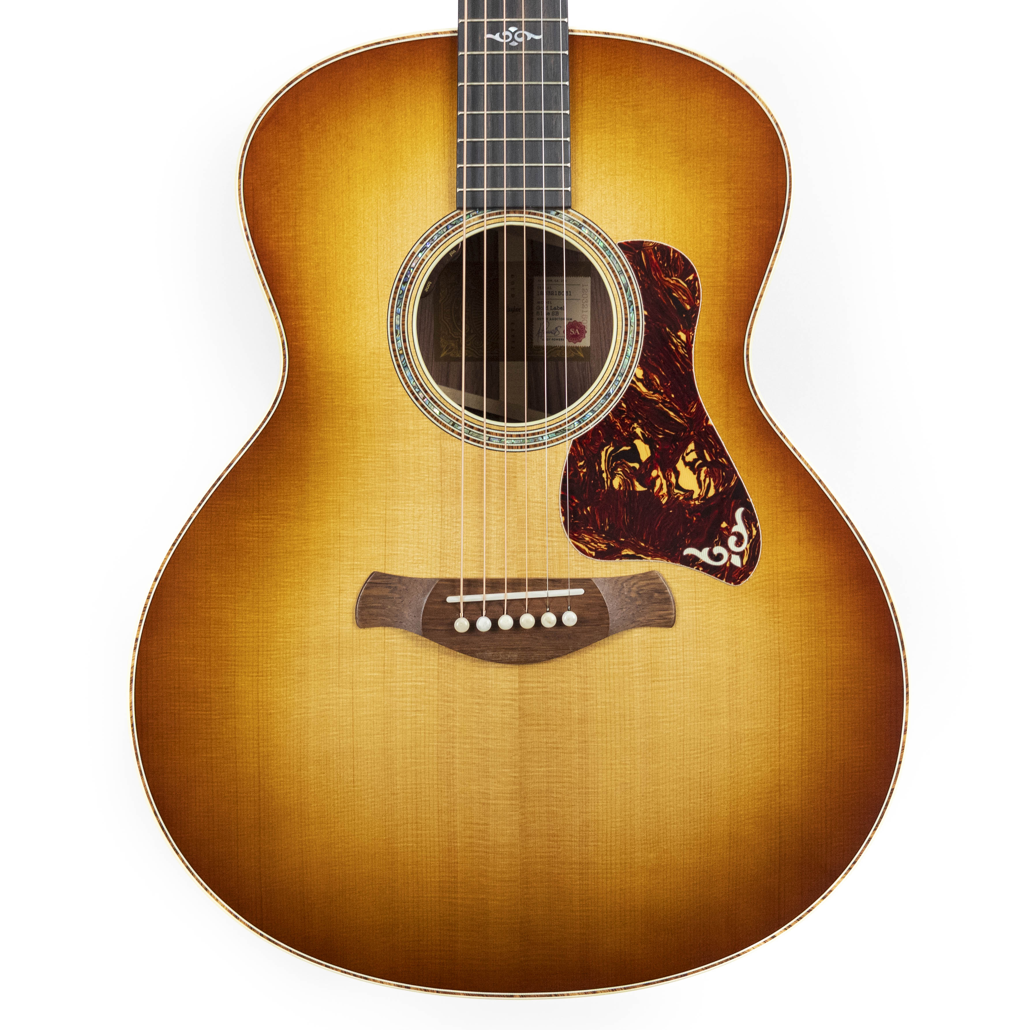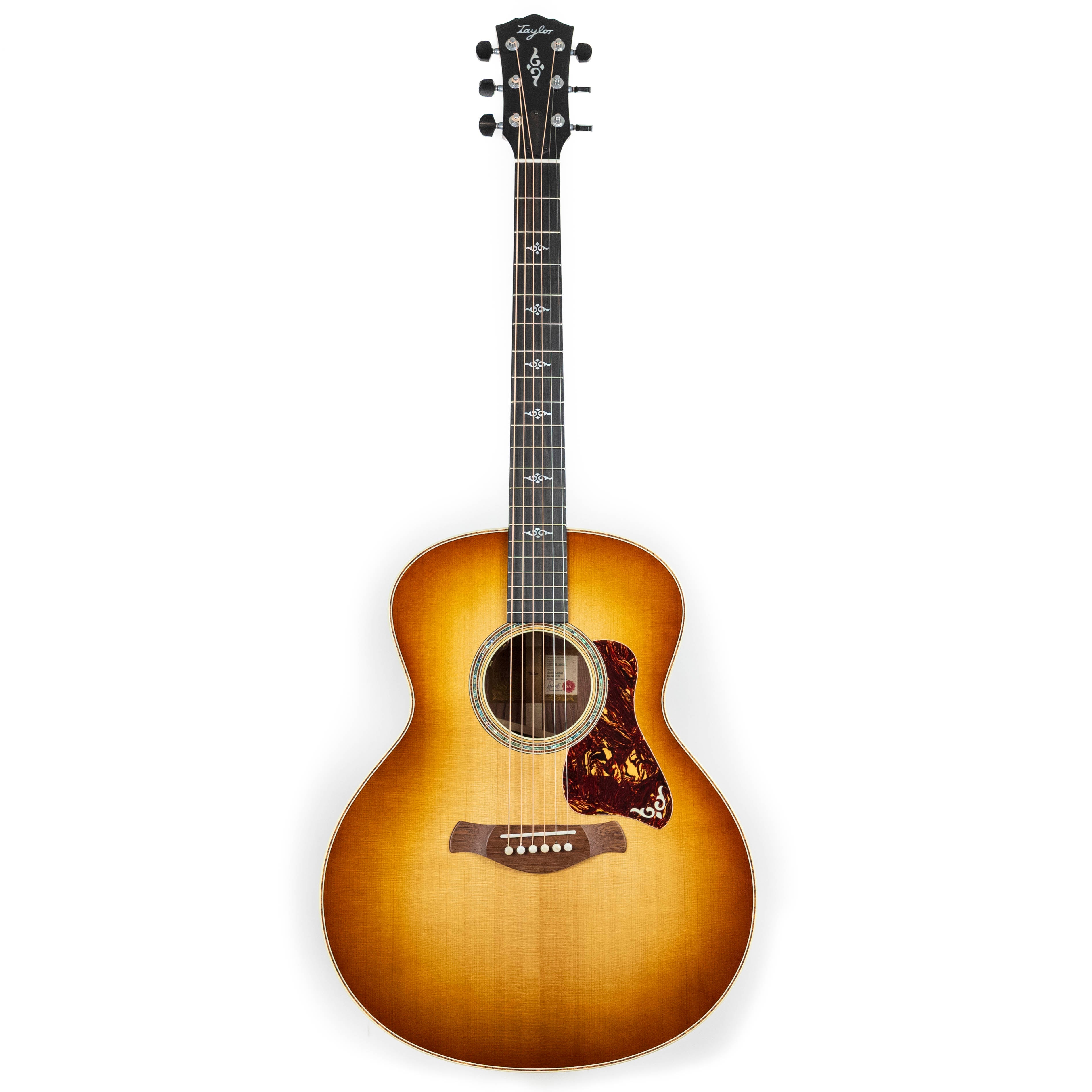 From Taylor Guitar’s Website: "This edition of our all-new Gold Label 814e adds a lustrous sunburst finish to match its seasoned, heritage-style sound and lush overtones. Featuring the new Super Auditorium body shape, this model boasts back and sides of Honduran rosewood, a torrefied Sitka spruce top and a fanned variant of our tone-boosting V-Class bracing architecture. The result is a sound with stunning warmth and richness, complemented with remarkable power and clarity even with the most aggressive attack. A new long-tenon neck joint improves sonic transfer for greater resonance while also offering even easier and more precise adjustability, letting you dial in the feel you need to sound your best. A suite of Continental inlays, grained ivoroid trim, a new pickguard, antique chrome Gotoh 510 tuners with ebony buttons, and a full-body gloss round out the package. This model includes LR Baggs Element VTC electronics with discrete soundhole-mounted controls, ensuring warm, rich sound when you need to plug in. The Gold Label 814e SB ships with a deluxe hardshell case featuring a stylish British Cocoa exterior."